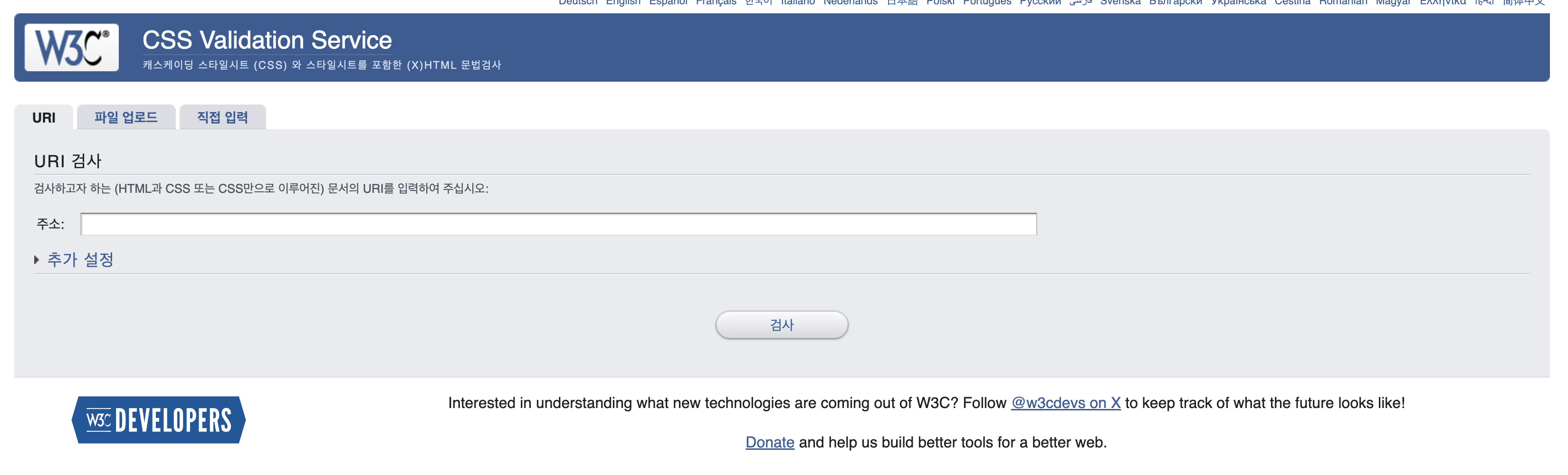 바로 웹 표준 유효성 검사를 실시하는 것이다. 유효성 검사는 HTML과 CSS 코드가 W3C 가이드라인에 따라 작성되었는지 확인하는 검사로, 아래의 각 사이트에서 진행할 수 있다.