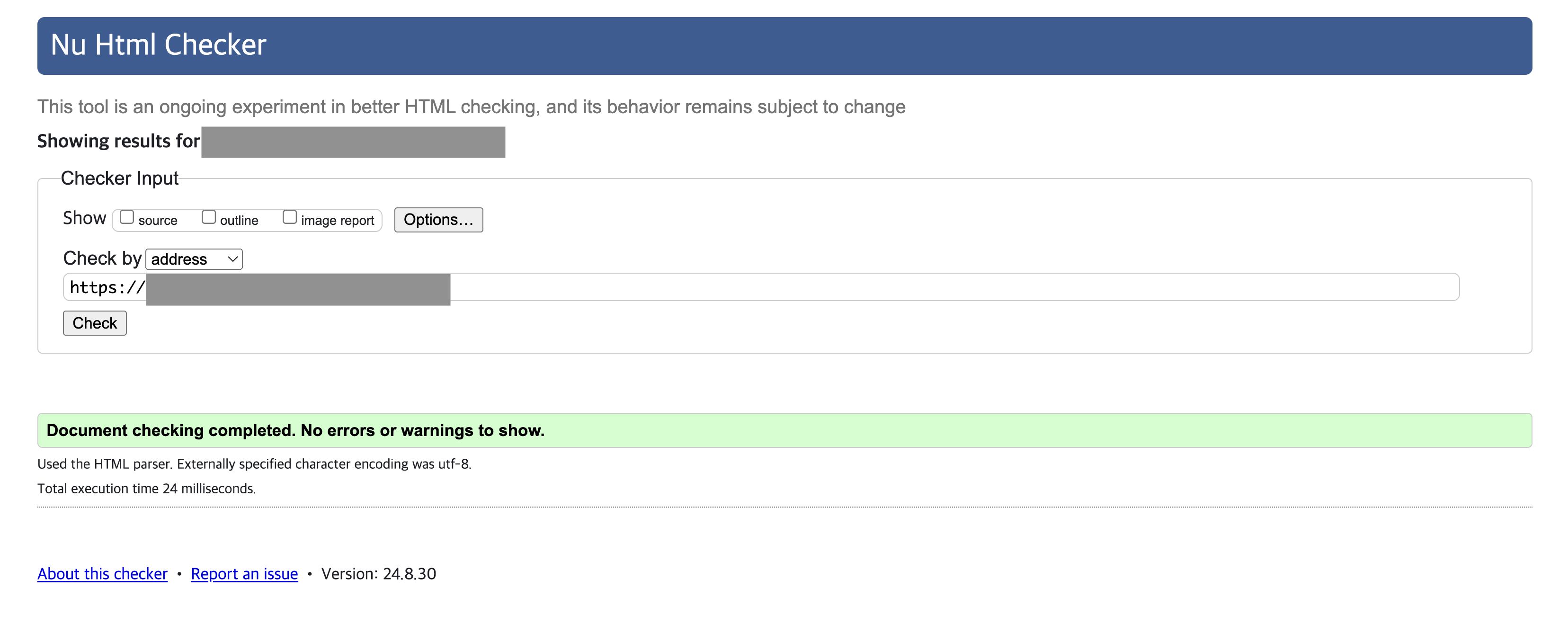 각 사이트에 접속하면 위와 같이 나타난다. 해당 사이트에 파일을 업로드해도 되고 배포된 페이지라면 url 주소를 입력해도 된다. 그럼 해당 코드가 W3C 가이드라인을 준수하고 있는 지 나타난다.